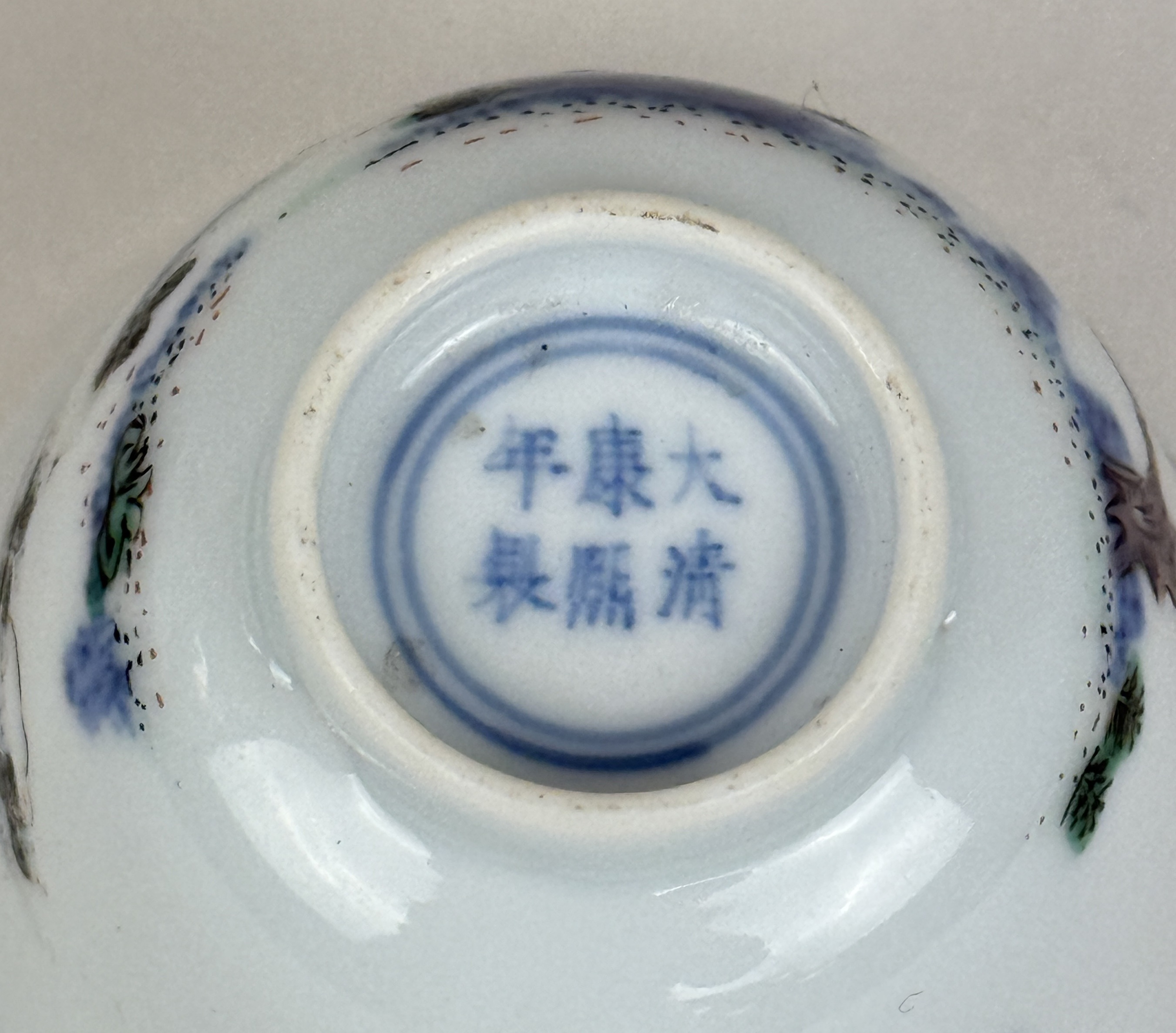 Lot 1, is a Chinese Famille Verte Porcelain Month Cup, Kangxi Mark and of the period (1662-1722).